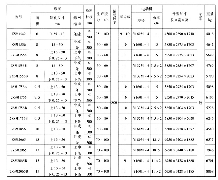 ZSM座式脫水振動篩運動軌跡為直線,全系列共有十六種規格,可供選煤、選礦、電力、制糖、制鹽等工業部門,對中細粒級物料進行干濕式分級、脫水、脫介和脫泥。篩機處理能力大,篩分效率高。